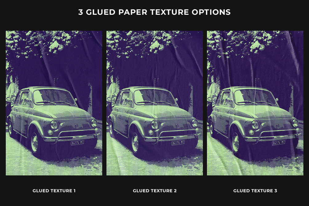 Full Preview: https://www.behance.net/gallery/173226613/Glued-Poster-Photo-Effect