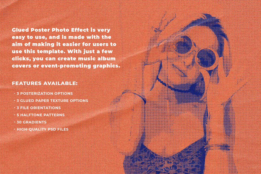 Glued Poster Photo Effect is very easy to use, and is made with the aim of making it easier for users to use this template. With just a few clicks, you can create music album covers or event-promoting graphics.
