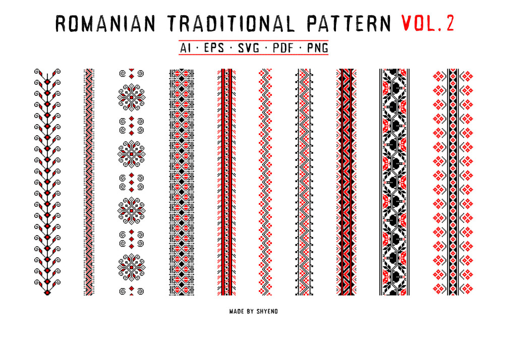Traditional Romanian Embroidery Pattern - Vol 2- Perfect for embroidery, posters, or print for t-shirts, for creating greeting cards or invitations, wall art, and more other.